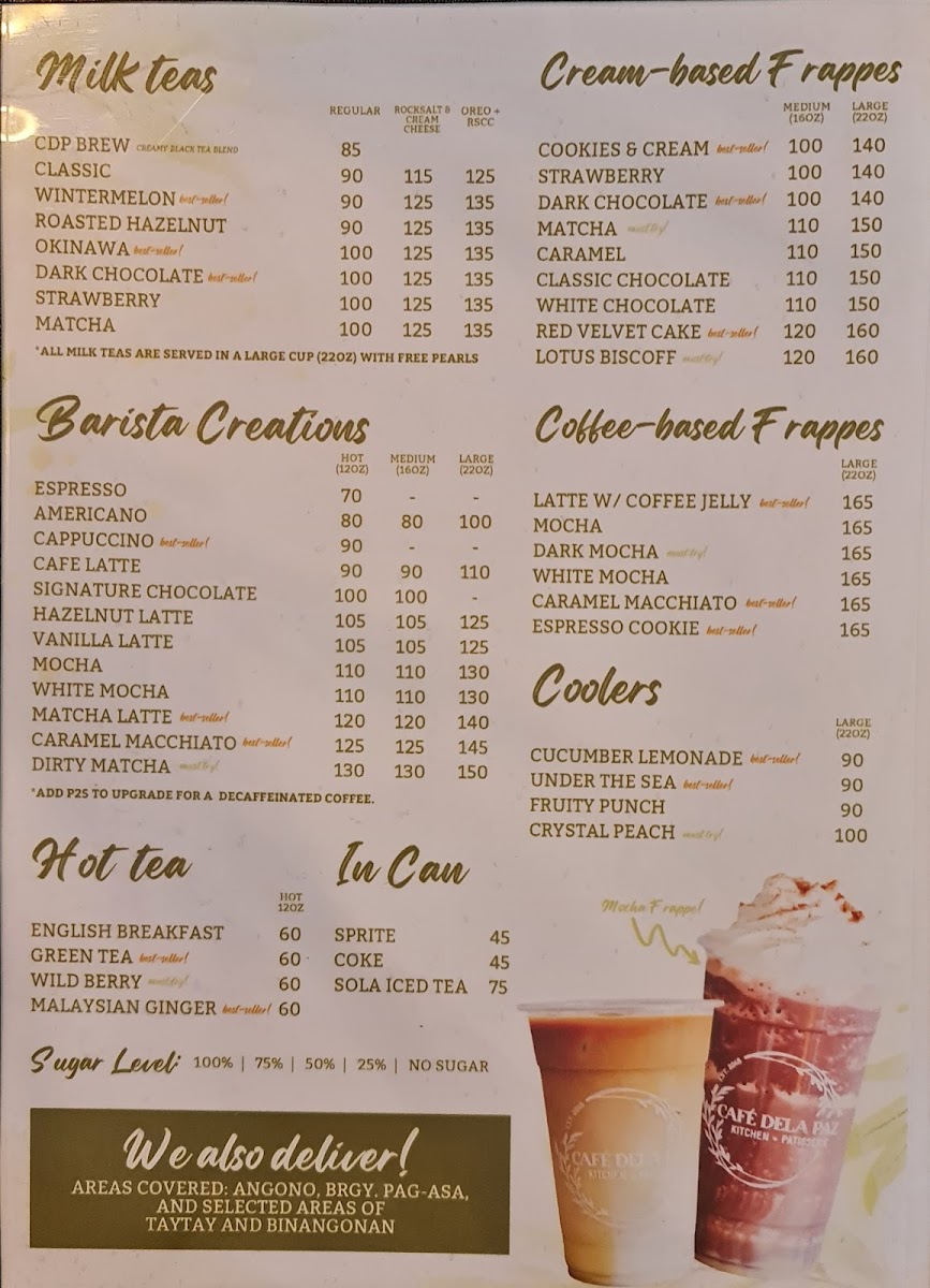Welcome to Café Dela Paz, an inviting café nestled on 0119 Quezon Ave in Angono, Rizal. This charming spot combines a cozy atmosphere with a delightful menu, making it a must-visit for both locals and those passing through. Whether you're in for a quick bite or looking to unwind with a book, Café Dela Paz provides the perfect backdrop.